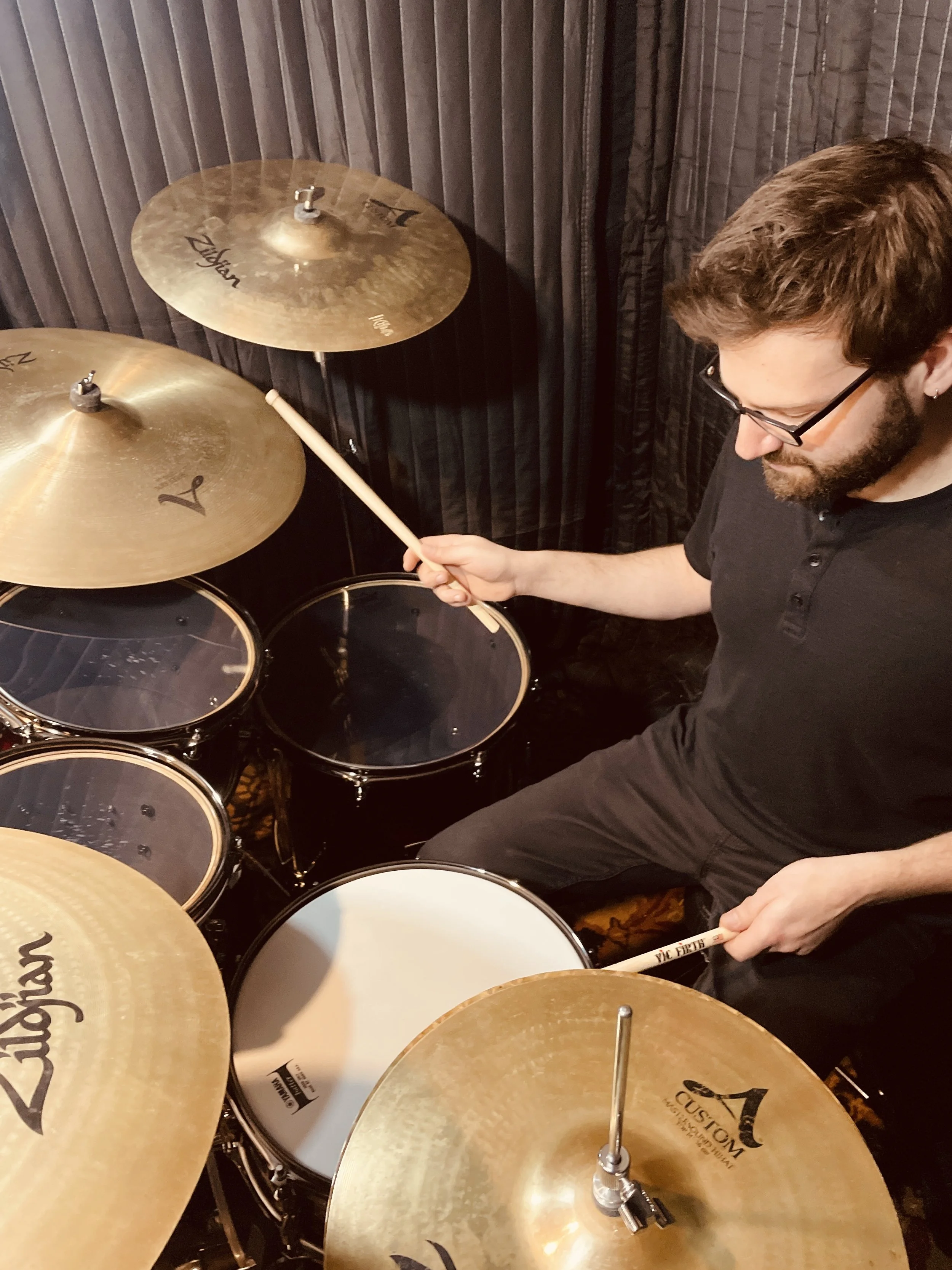 Russ started playing professionally at age 9 and hasn’t looked back since! Growing up in Ithaca, NY, he had the fortunate opportunity to study with many incredible drummers including Conrad Alexander, George Reed, Billy Lang and Taz Cannon. After winning two Downbeat Magazine awards for Blues/Pop/Rock and Jazz drumming, he attended Berklee College of Music. While at Berklee he studied with Dave Weigert where he transcribed and studied the great jazz drummers. Upon graduating, he began his career as a professional drummer, performing with legendary artists and bands such as Jay Ungar & Molly Mason, Dee White, Kevin Wimmer and Blue Eagle, Lindsay Foote, Talia Rose and Eva Gertz. He also works as a studio drummer at Plaid Dog Recording.